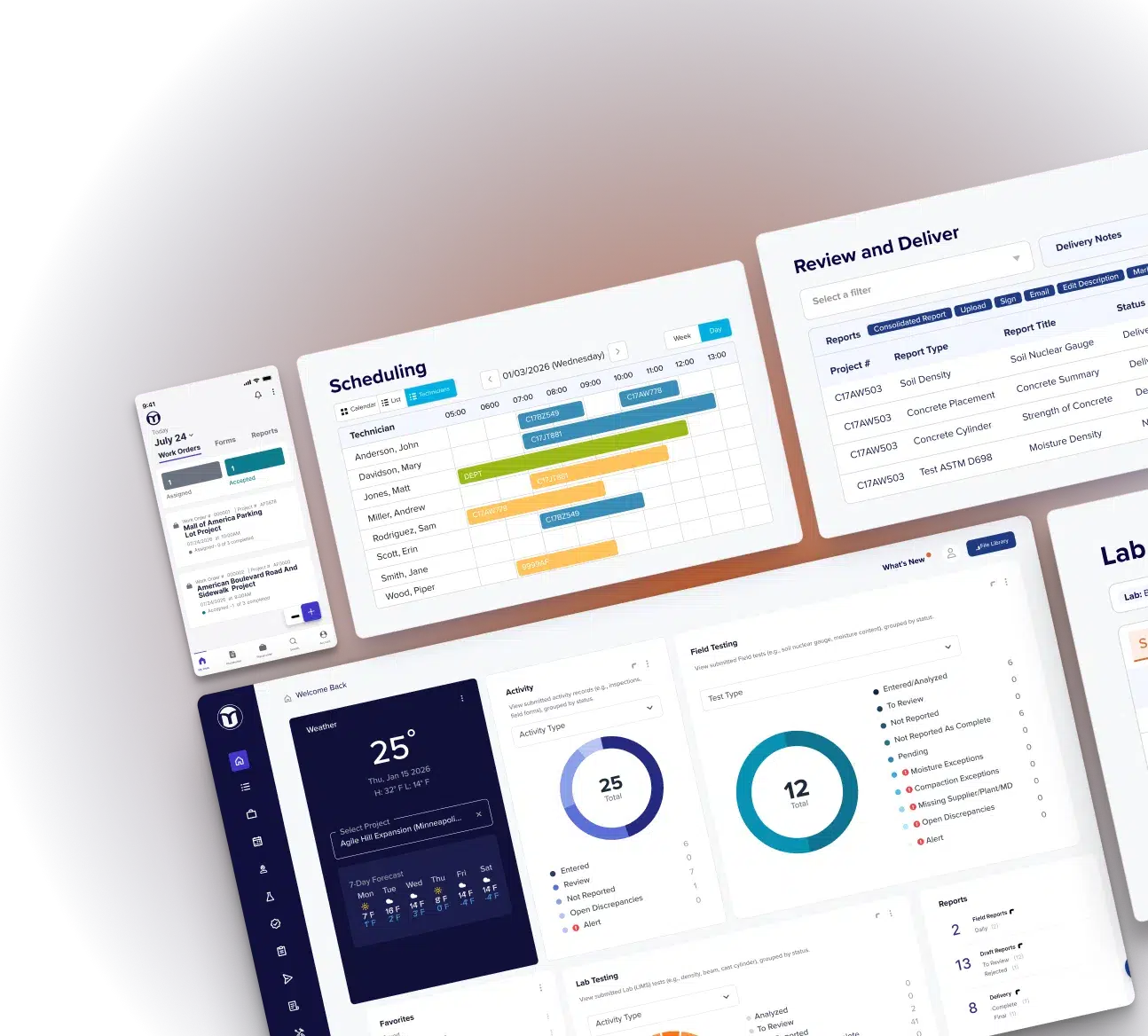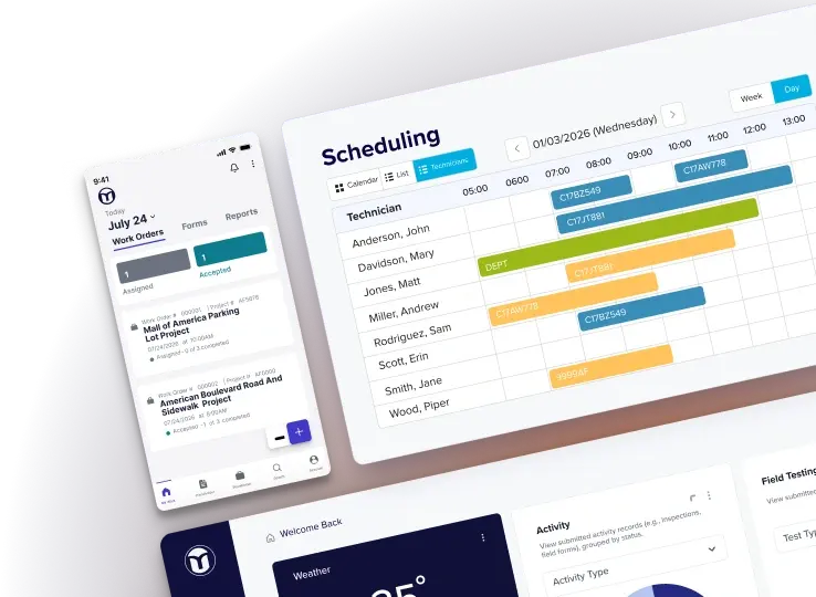 MetaField brings technicians, lab staff, project managers, and office personnel together on a single platform built for Construction Materials Testing, Geotechnical Engineering, and Inspections.