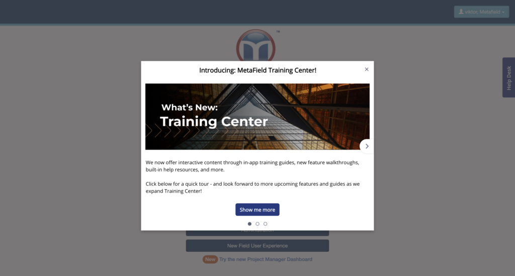 - Introduction to MetaField Training Center - In-app help and new feature walkthroughs are now available
